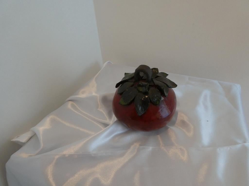 Évoquant avec charme la beauté intemporelle d’une pomme, cette boîte en grès noir chamotté est une œuvre d’art qui captive par sa simplicité et sa sophistication. Mesurant 11 cm de diamètre et 12 cm de hauteur, elle est parfaitement proportionnée pour orner n’importe quel espace avec élégance. Son allure rouge émaillé luit d’une intensité vibrante, contrastant avec les feuilles vertes délicatement posées sur son sommet, signifiant une fraîcheur éternelle.
