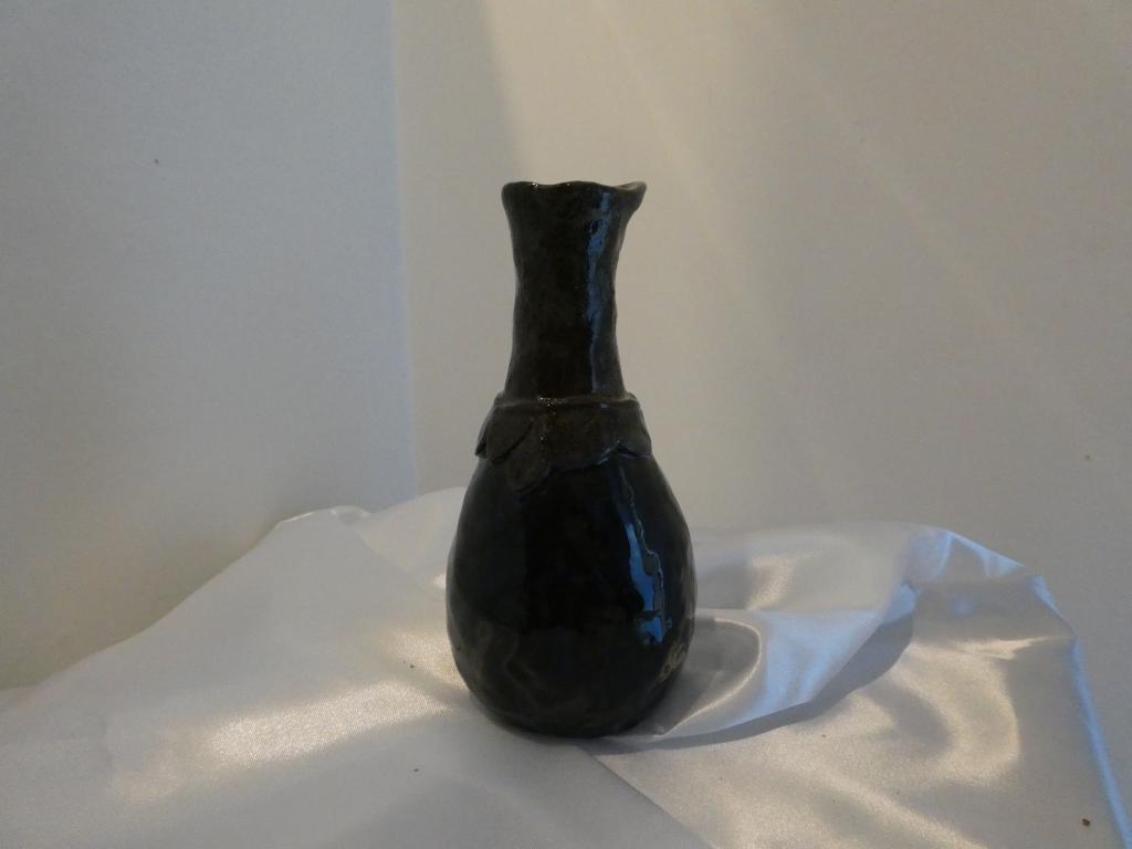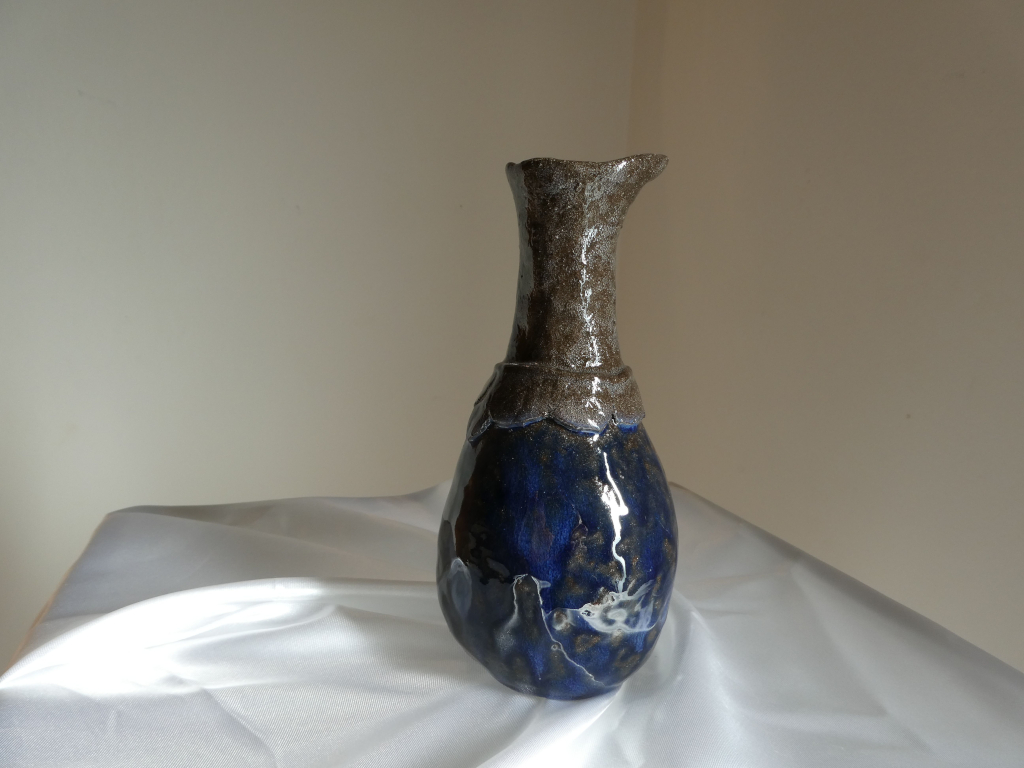 Découvrez ce vase à bec en grès noir chamotté, émaillé transparent et bleu de Sèvres. Un équilibre parfait entre texture brute et délicatesse émaillée, idéale pour une décoration chic et contemporaine.