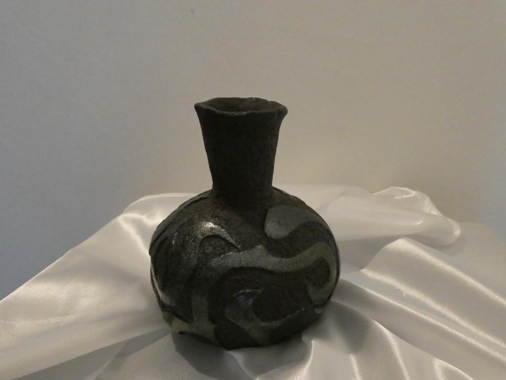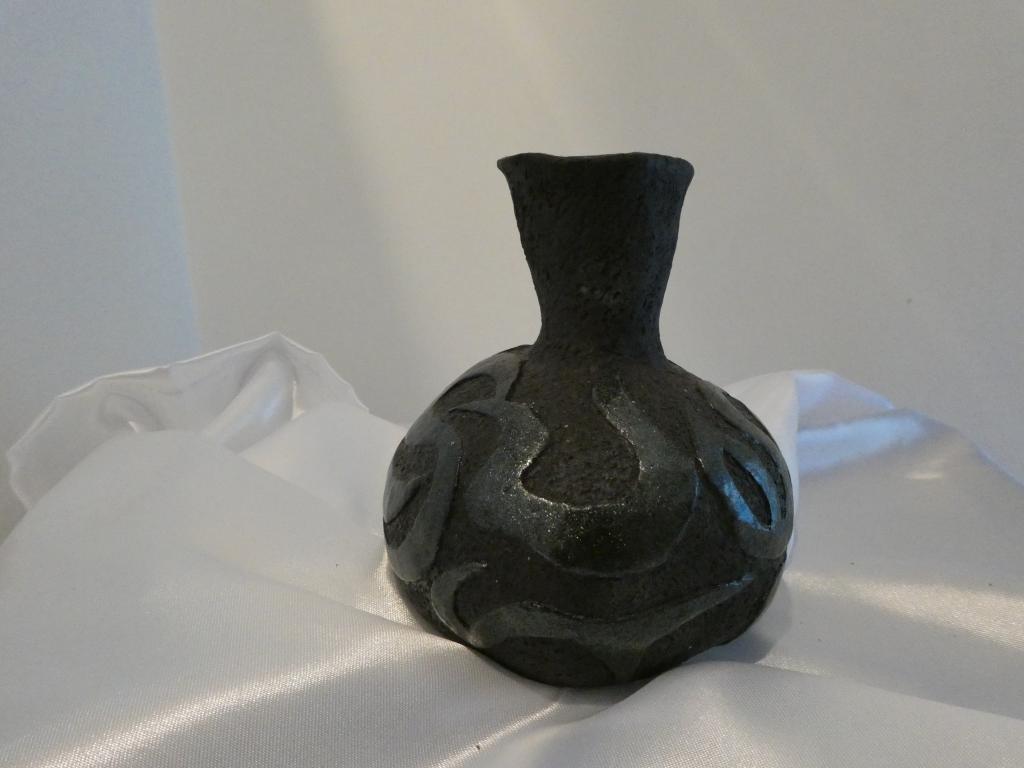 Vase en Grès Noir Chamotté pour Compositions Ikebana